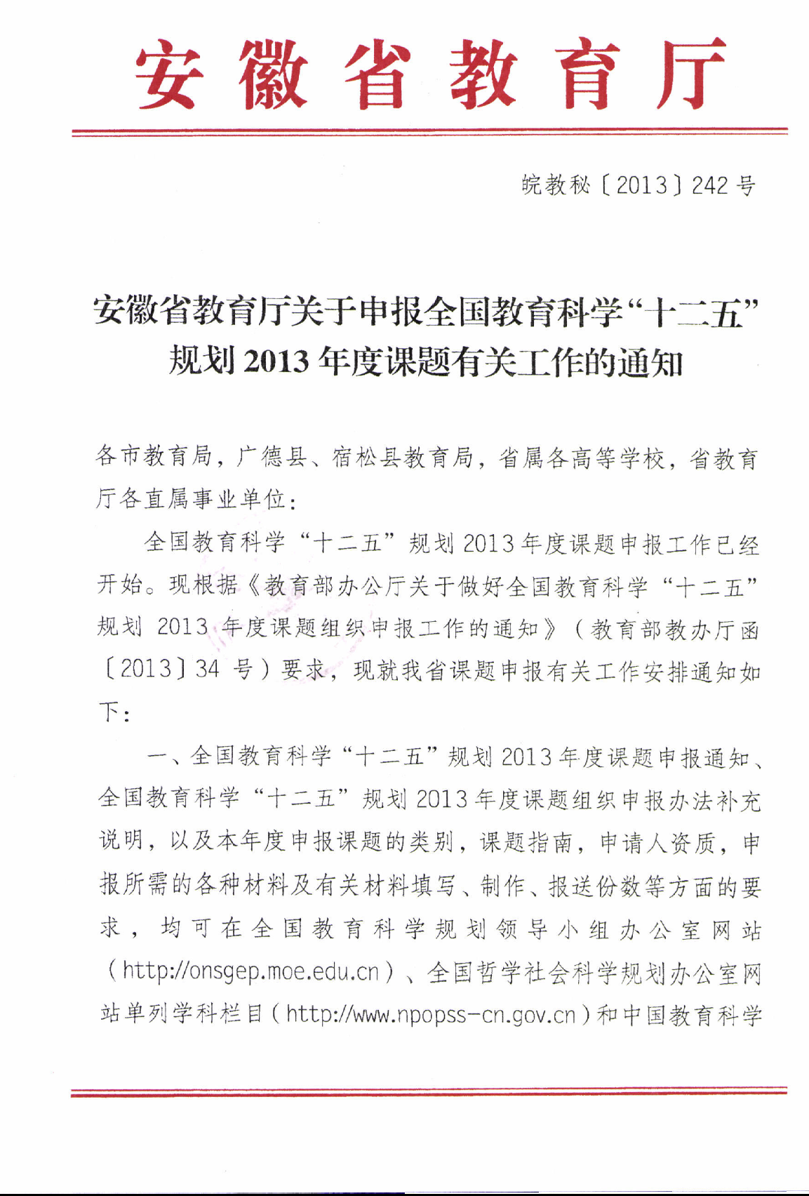 关于申报全国教育科学“十二五”规划2013年度课题工作的通知